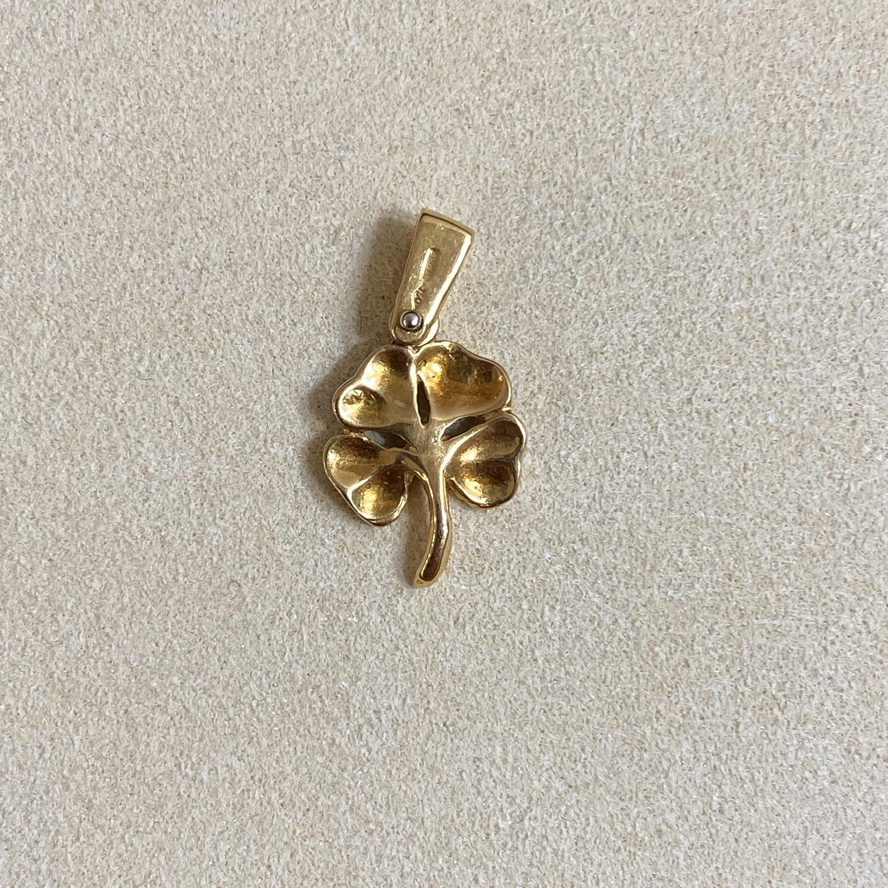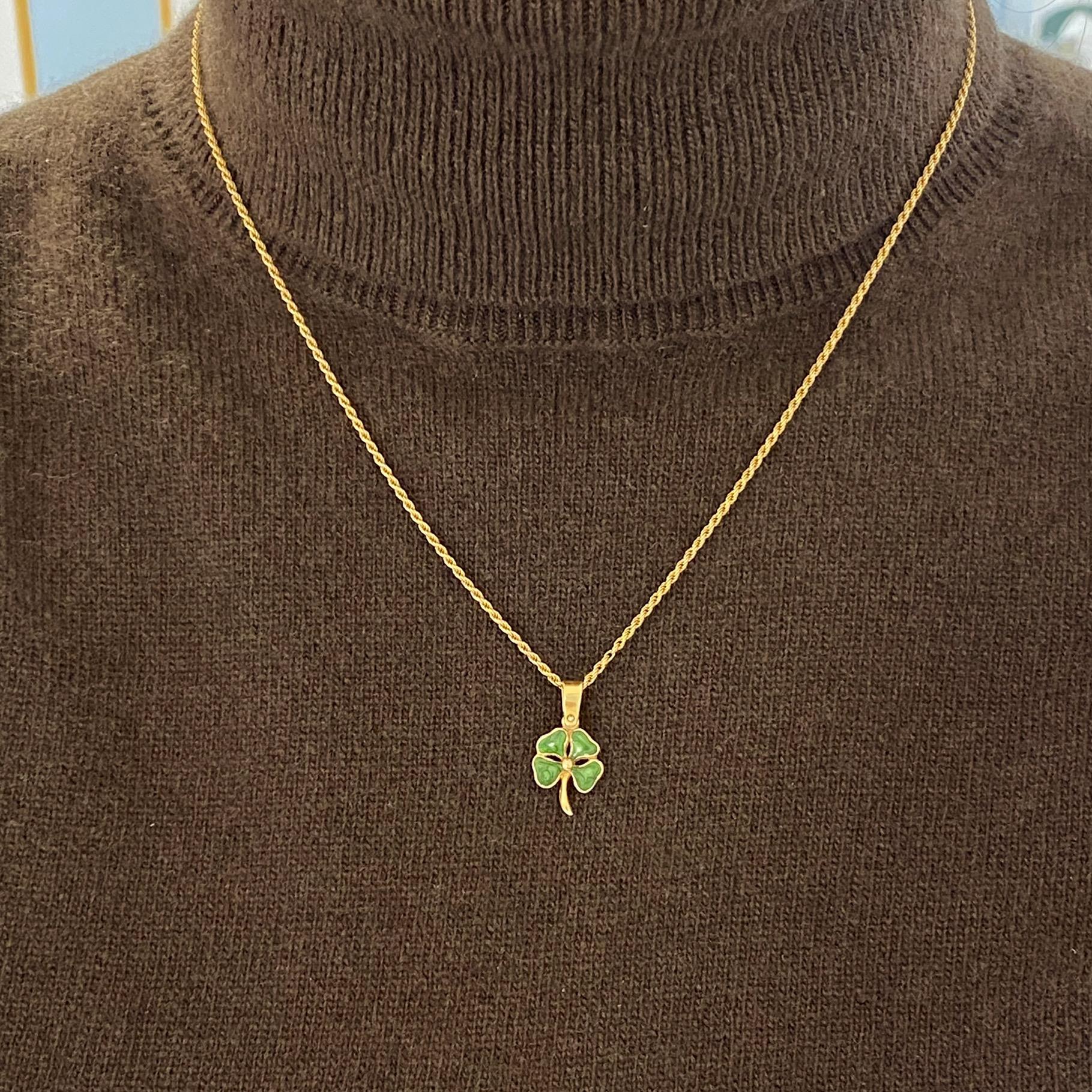 CIONDOLO VINTAGE QUADRIFOGLIO IN ORO 18KT DECORATO CON SMALTO VERDE