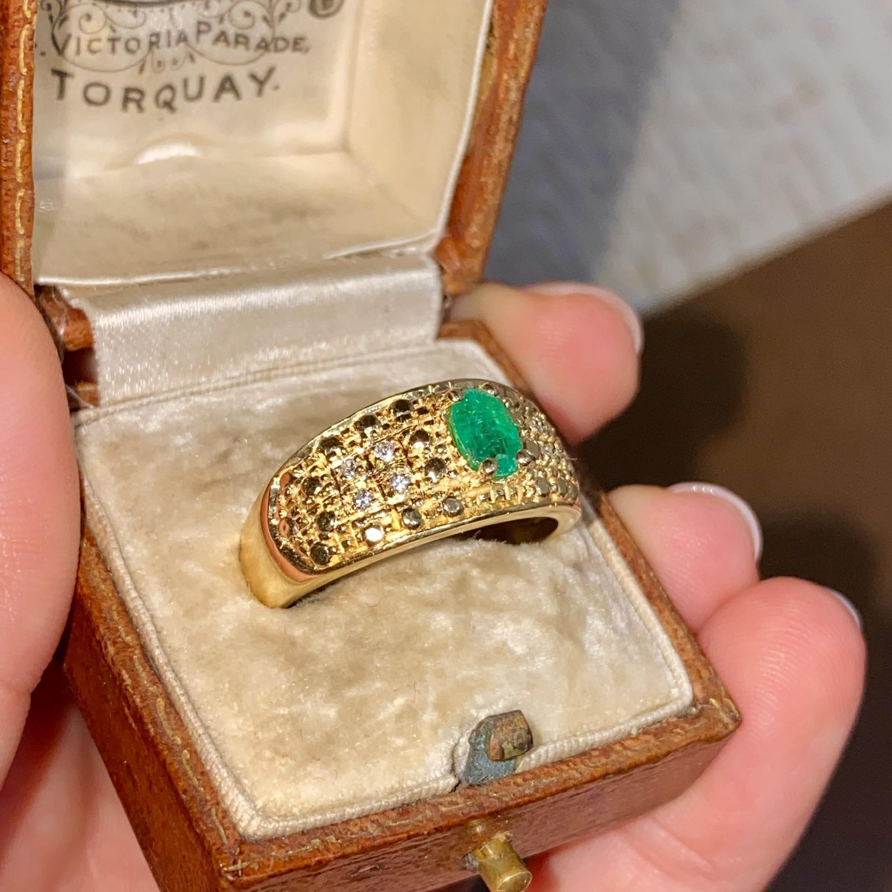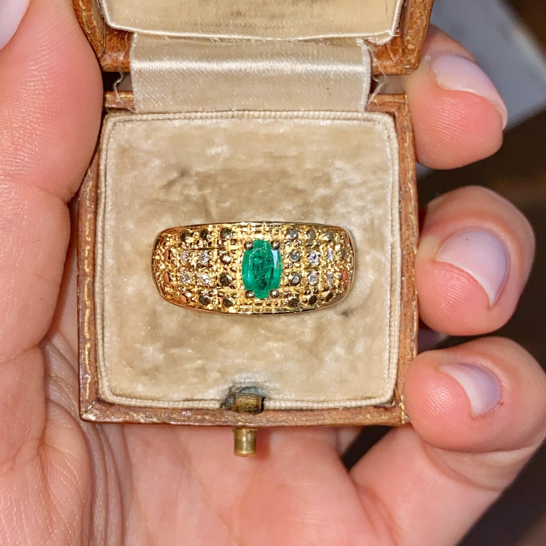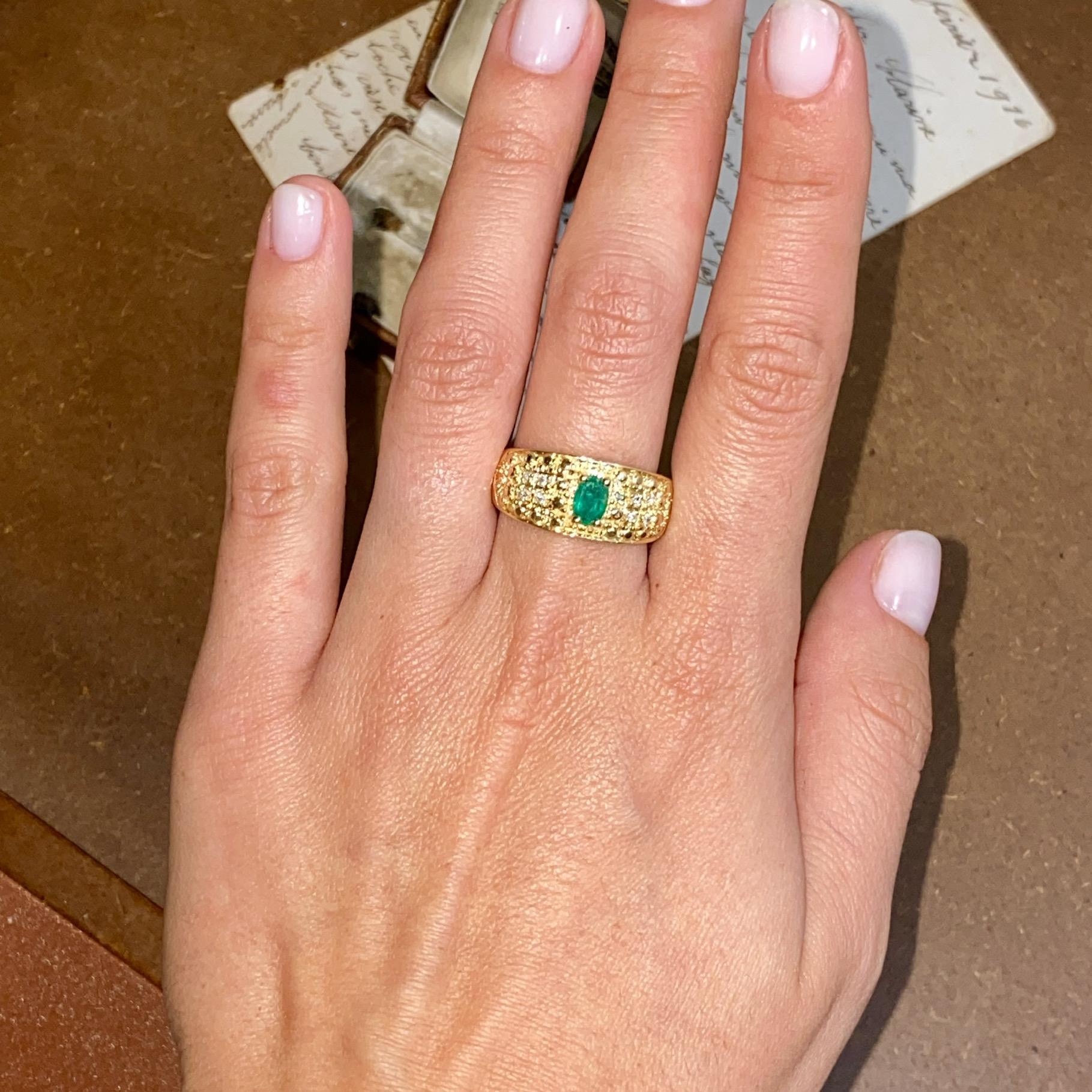 FASCIA VINTAGE IN ORO 18KT CON SMERALDO CT 0,45 CA. E DIAMANTI CT 0,10 CA.