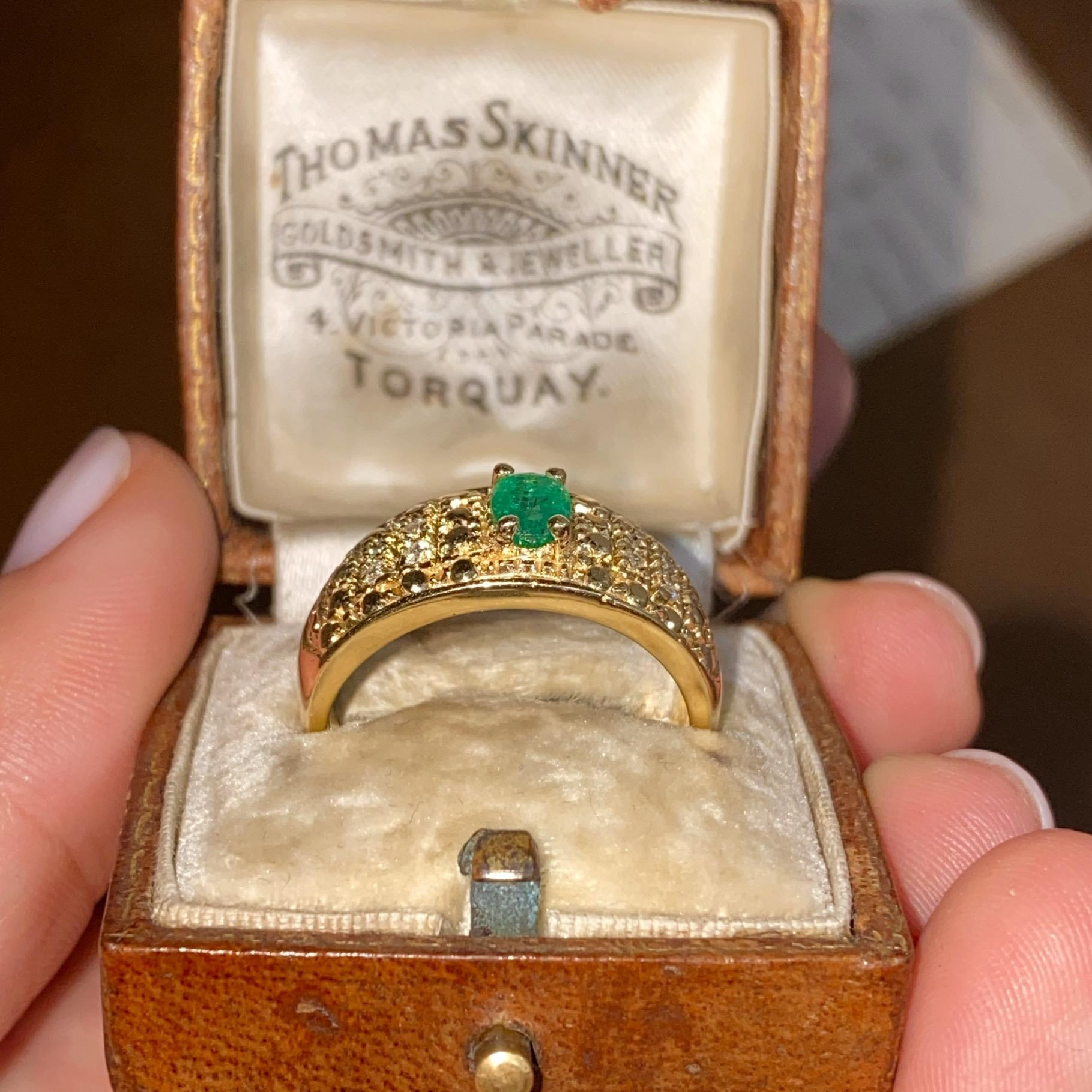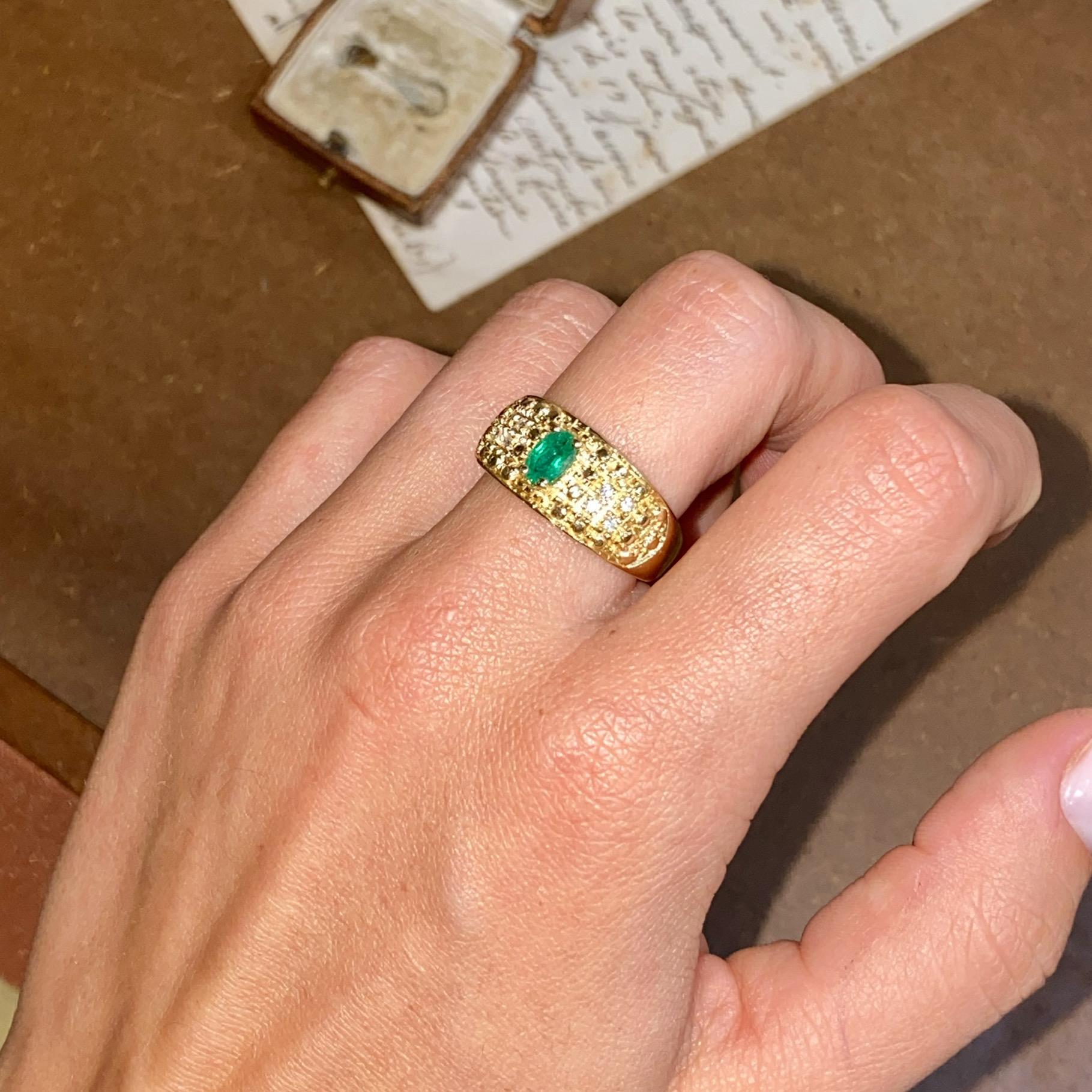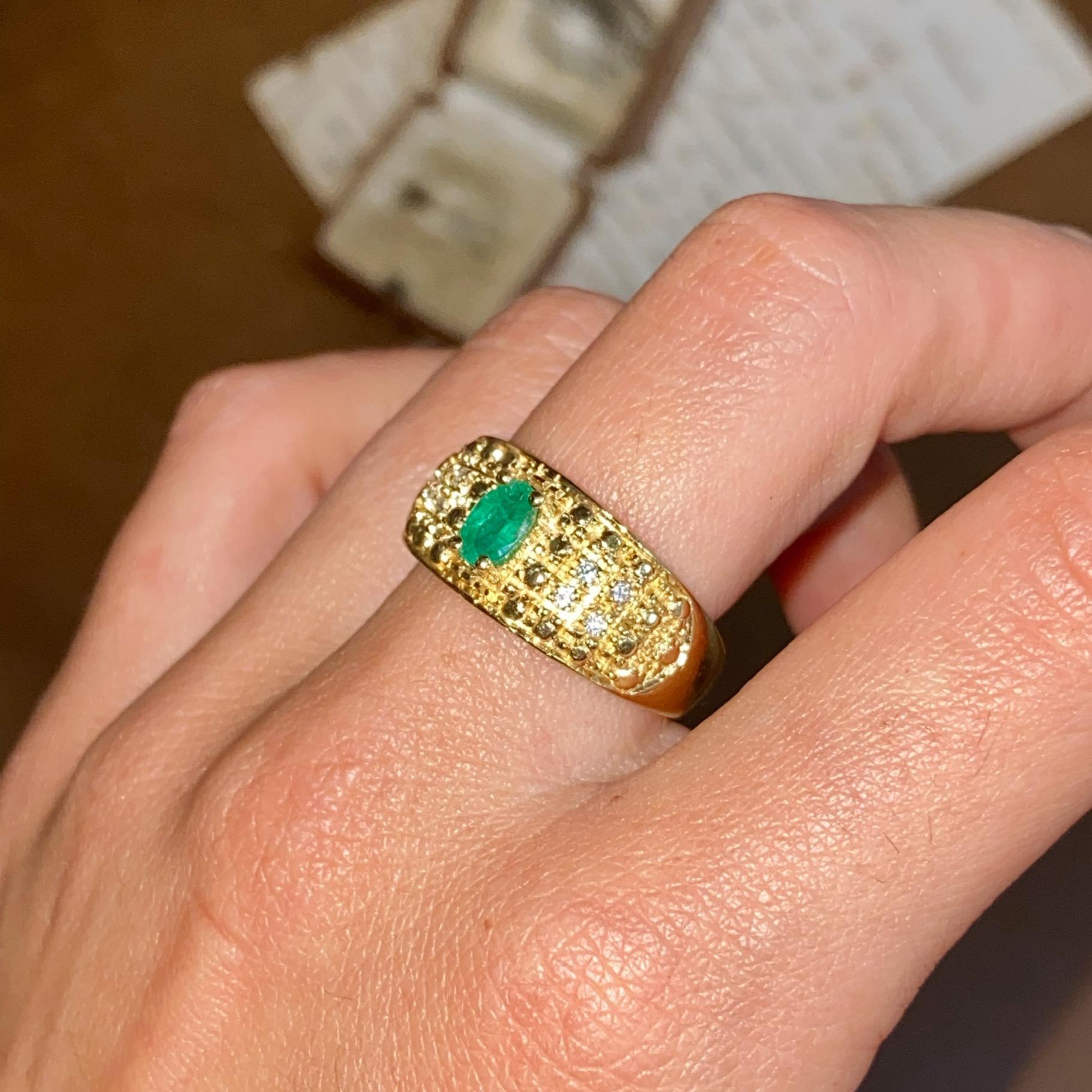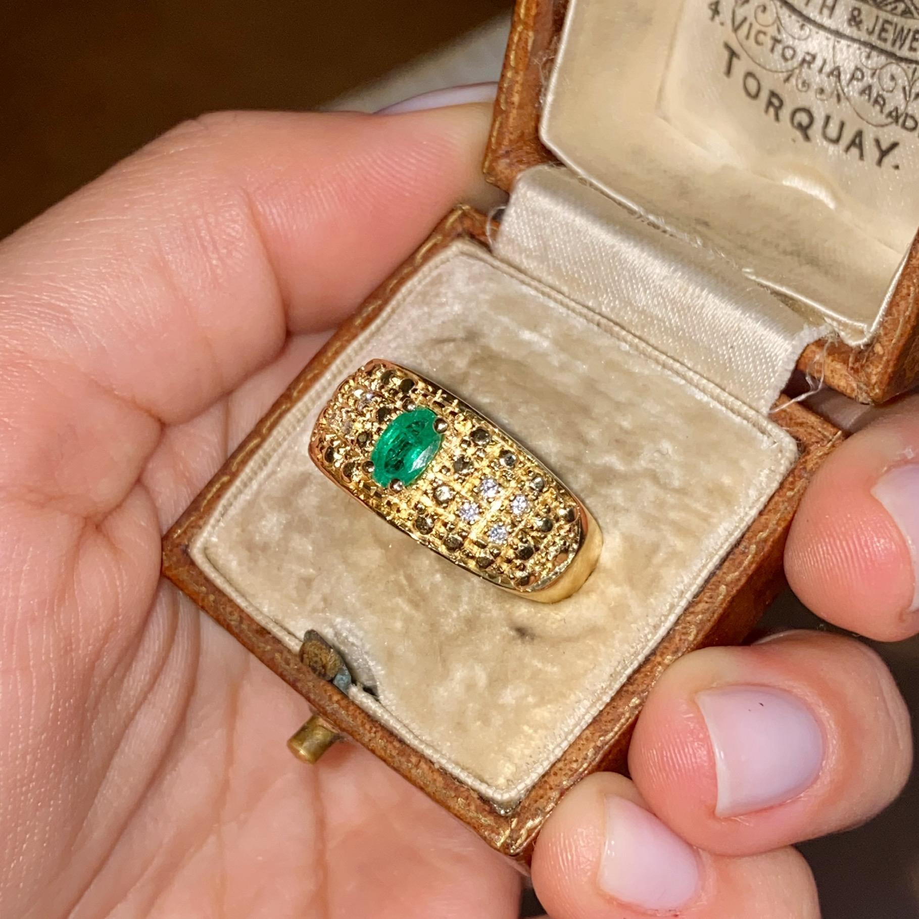 FASCIA VINTAGE IN ORO 18KT CON SMERALDO CT 0,45 CA. E DIAMANTI CT 0,10 CA.