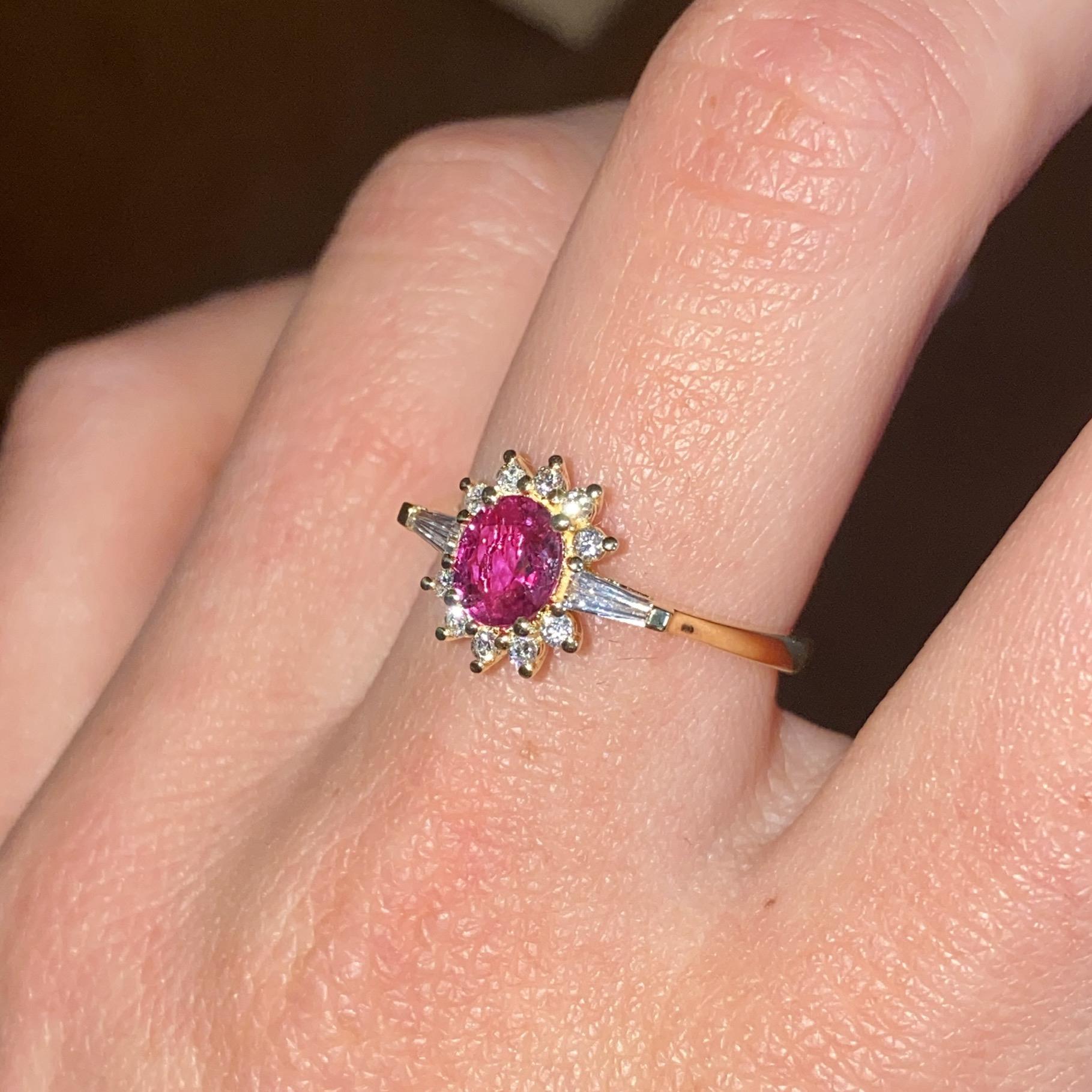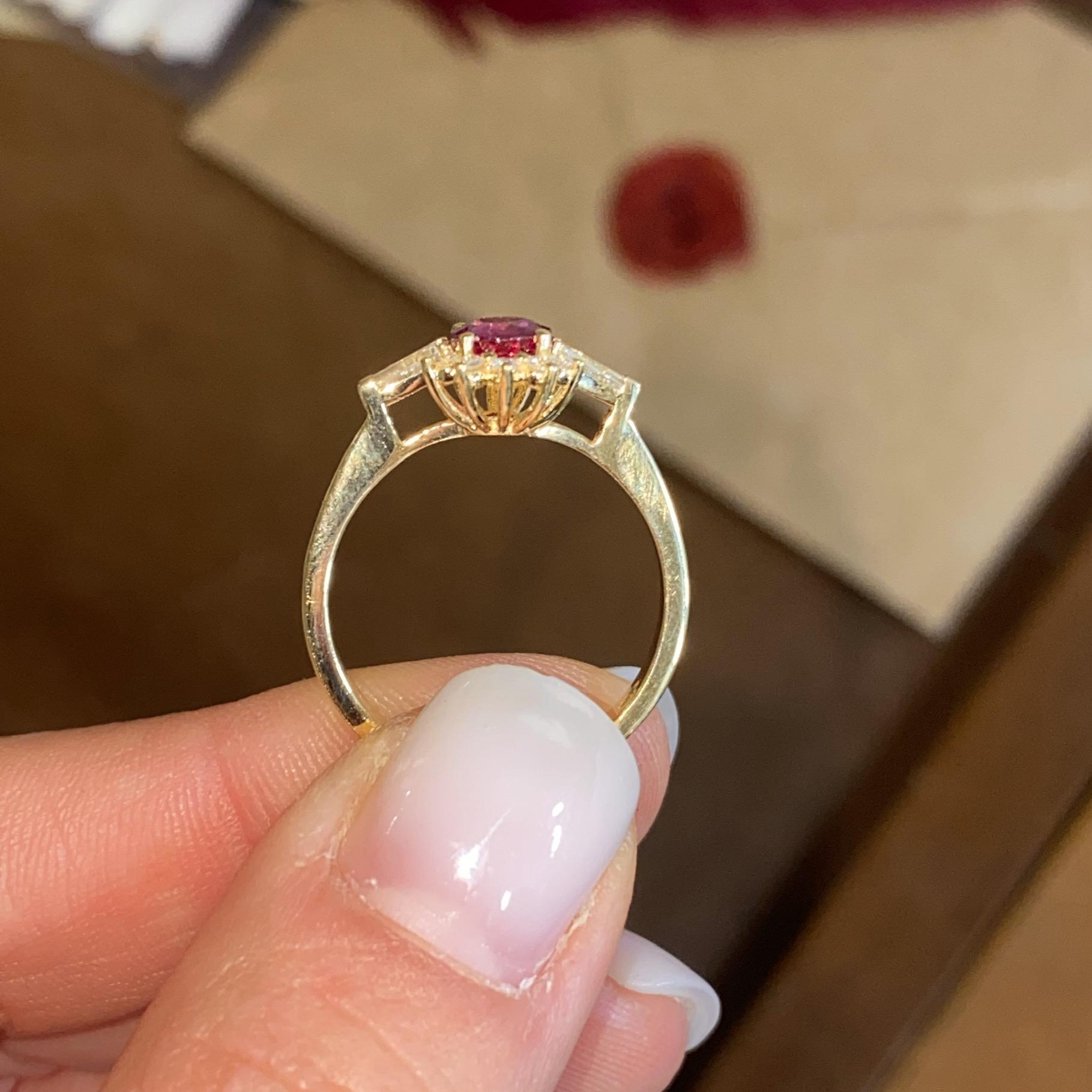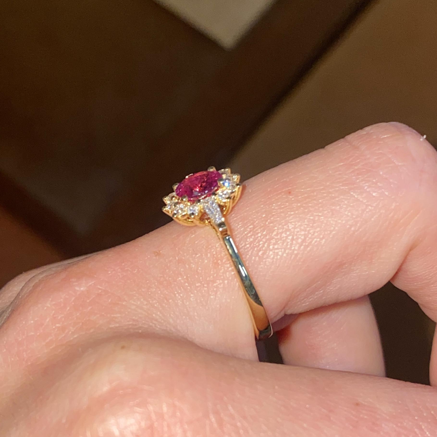 MARGHERITA IN ORO 18KT CON RUBINO CT 0,70 CA. E DIAMANTI CT 0,25 CA.