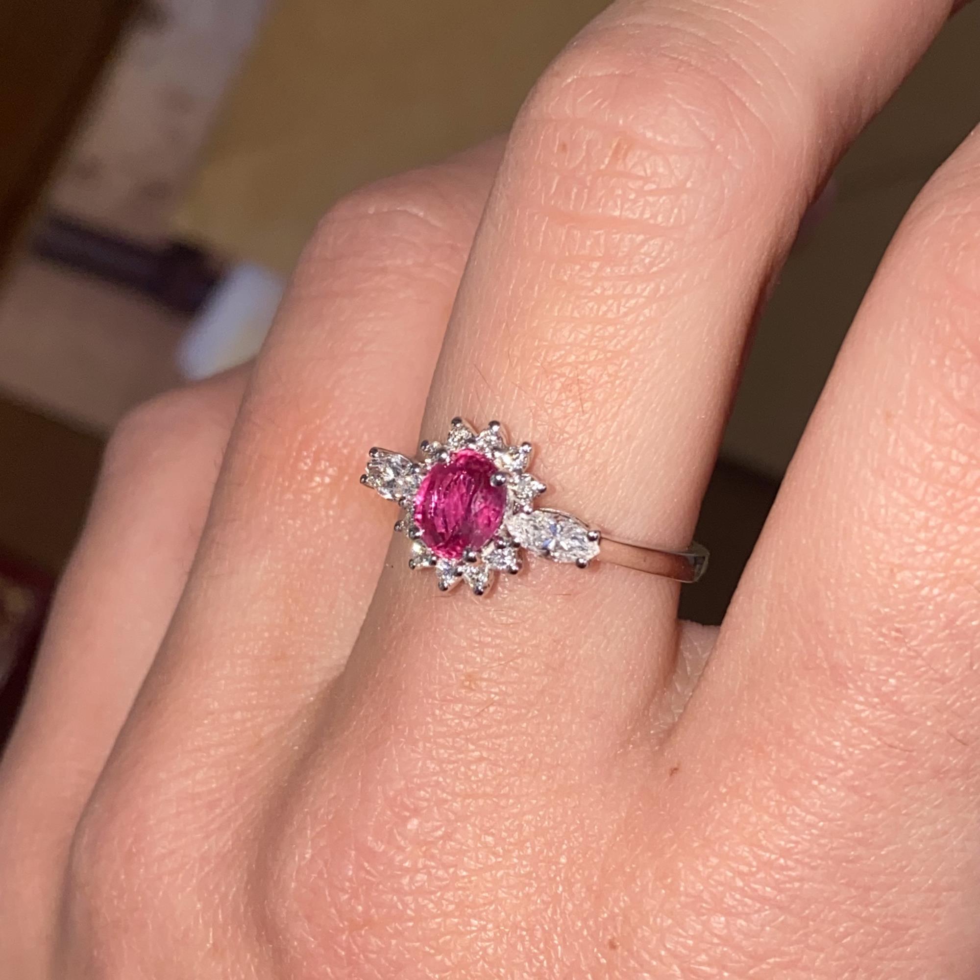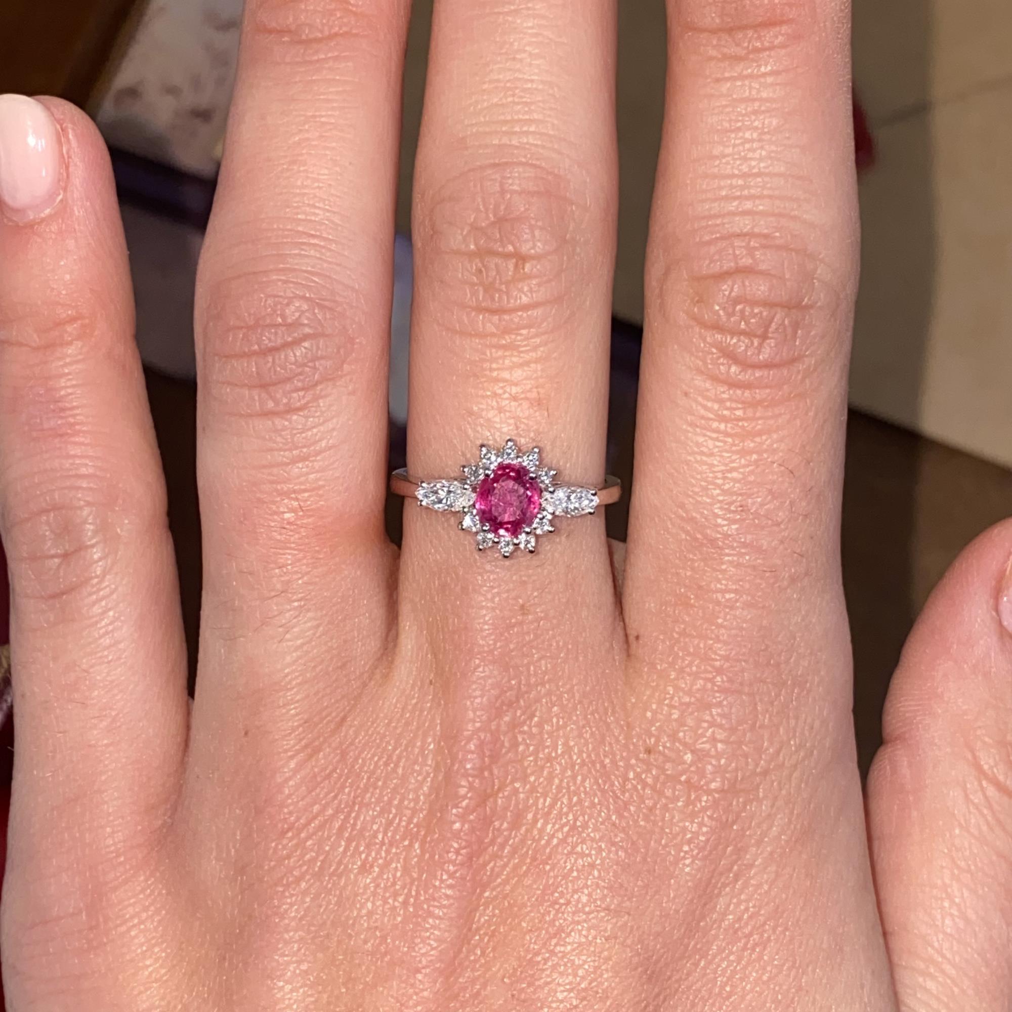 MARGHERITA IN ORO 18KT CON RUBINO CT 0,85 CA. E DIAMANTI CT 0,40 CA.
