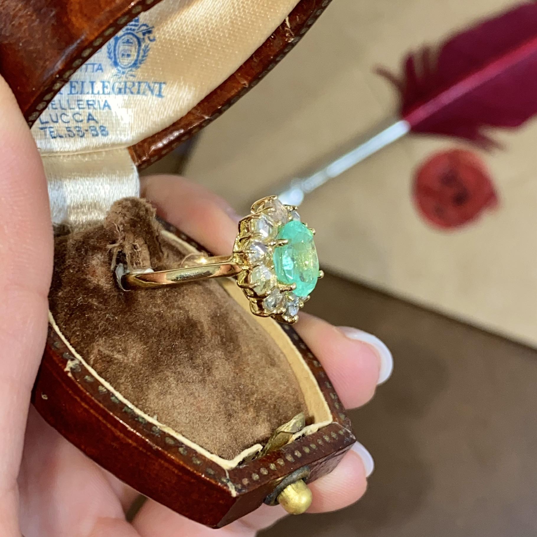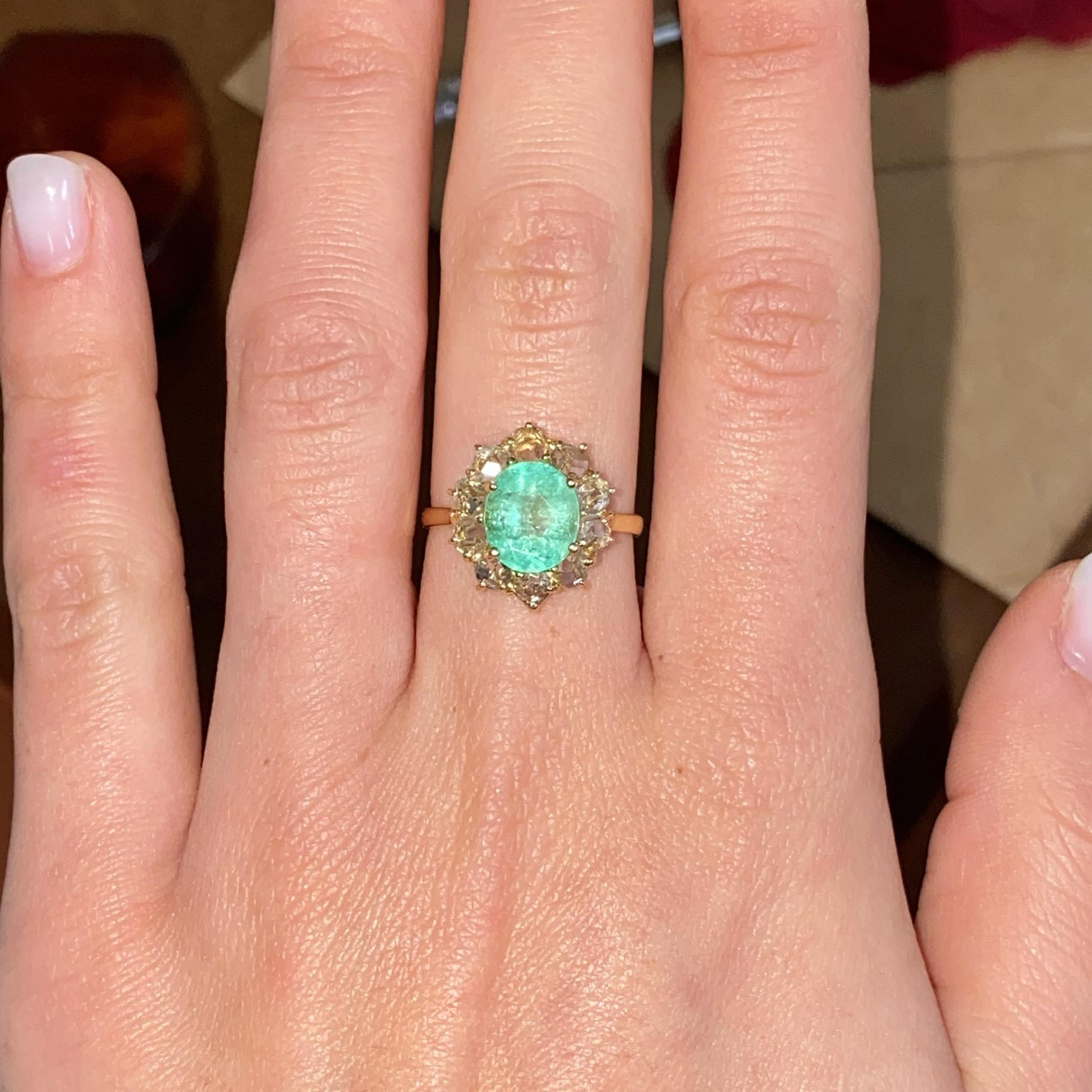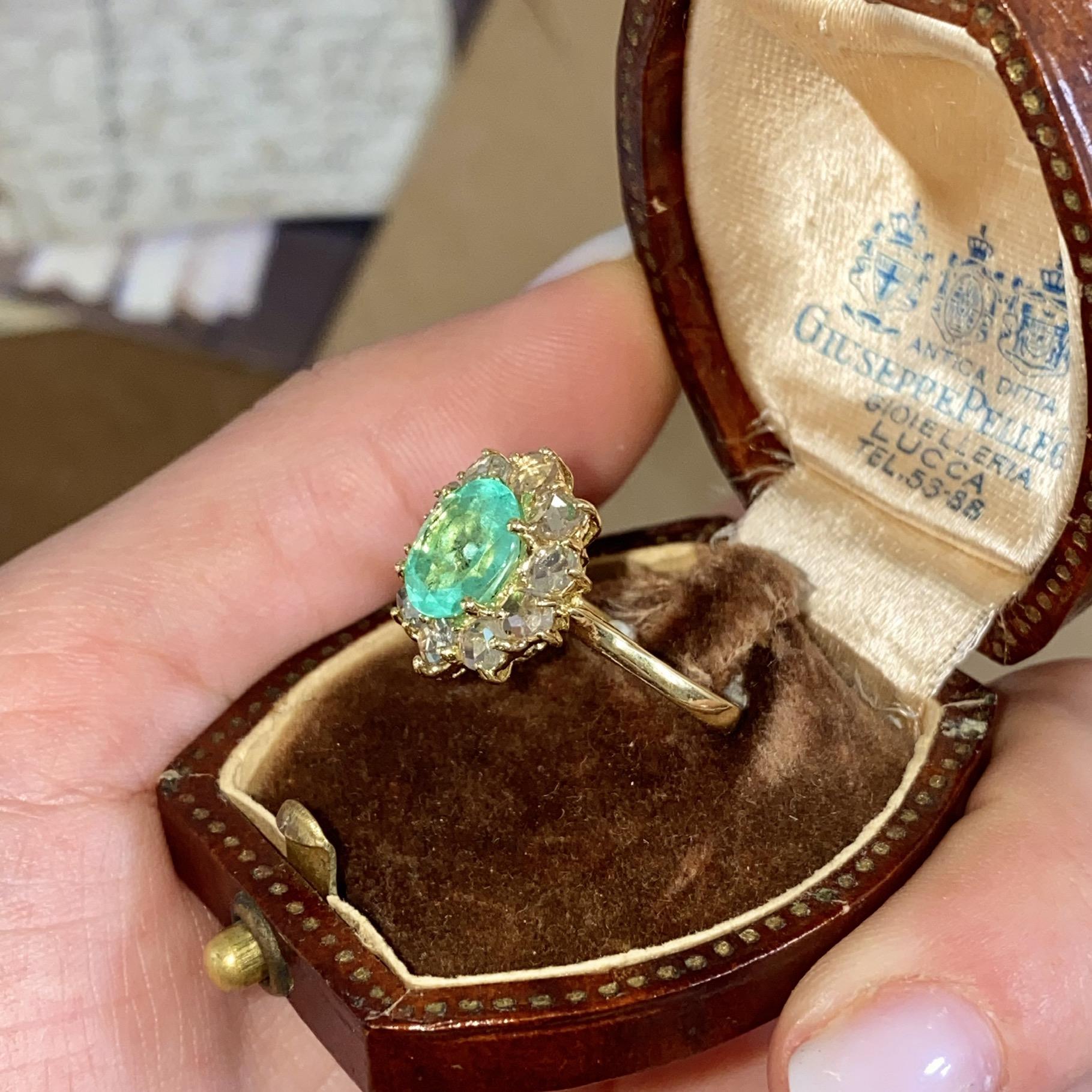 Oro 18kt, rosette di diamanti e smeraldo naturale