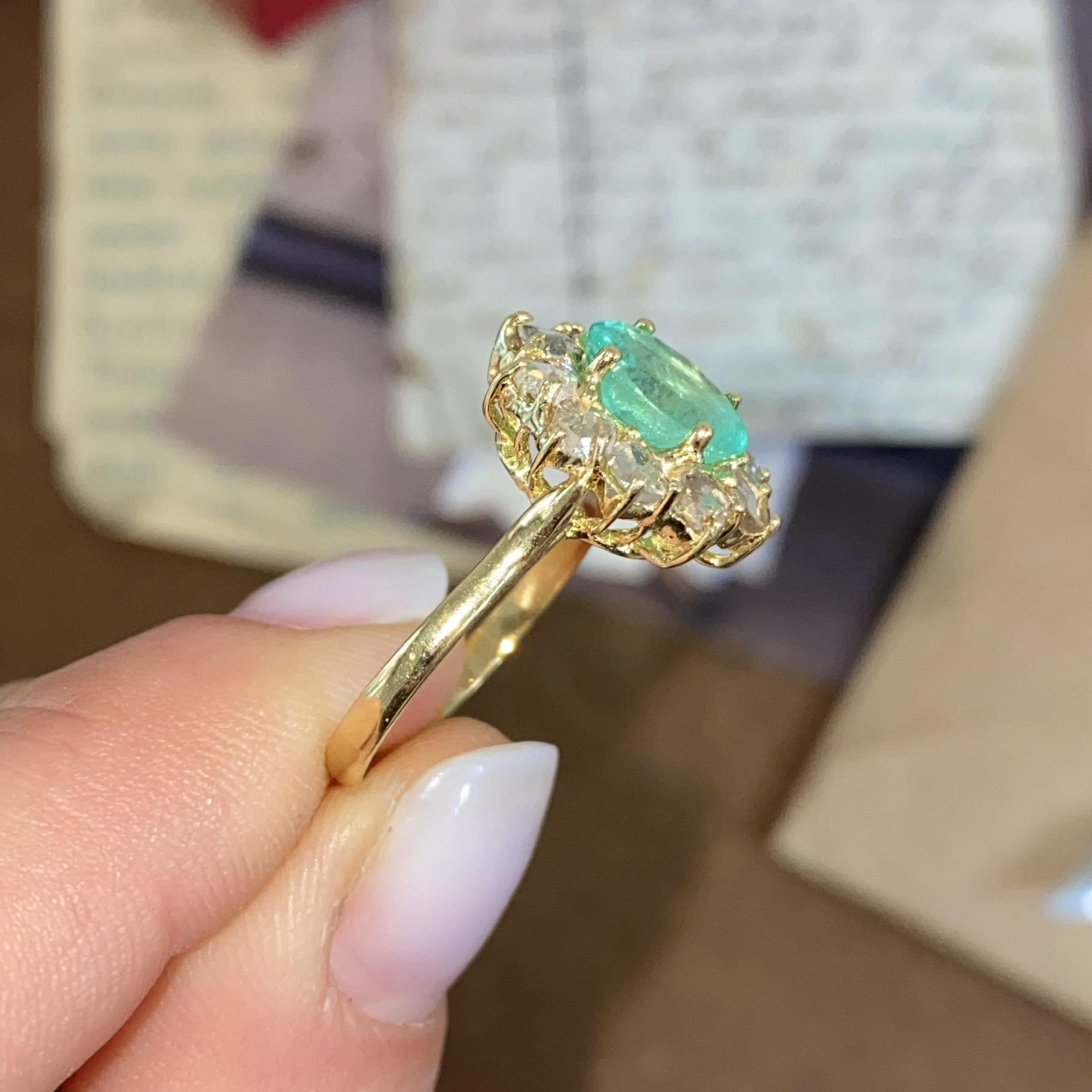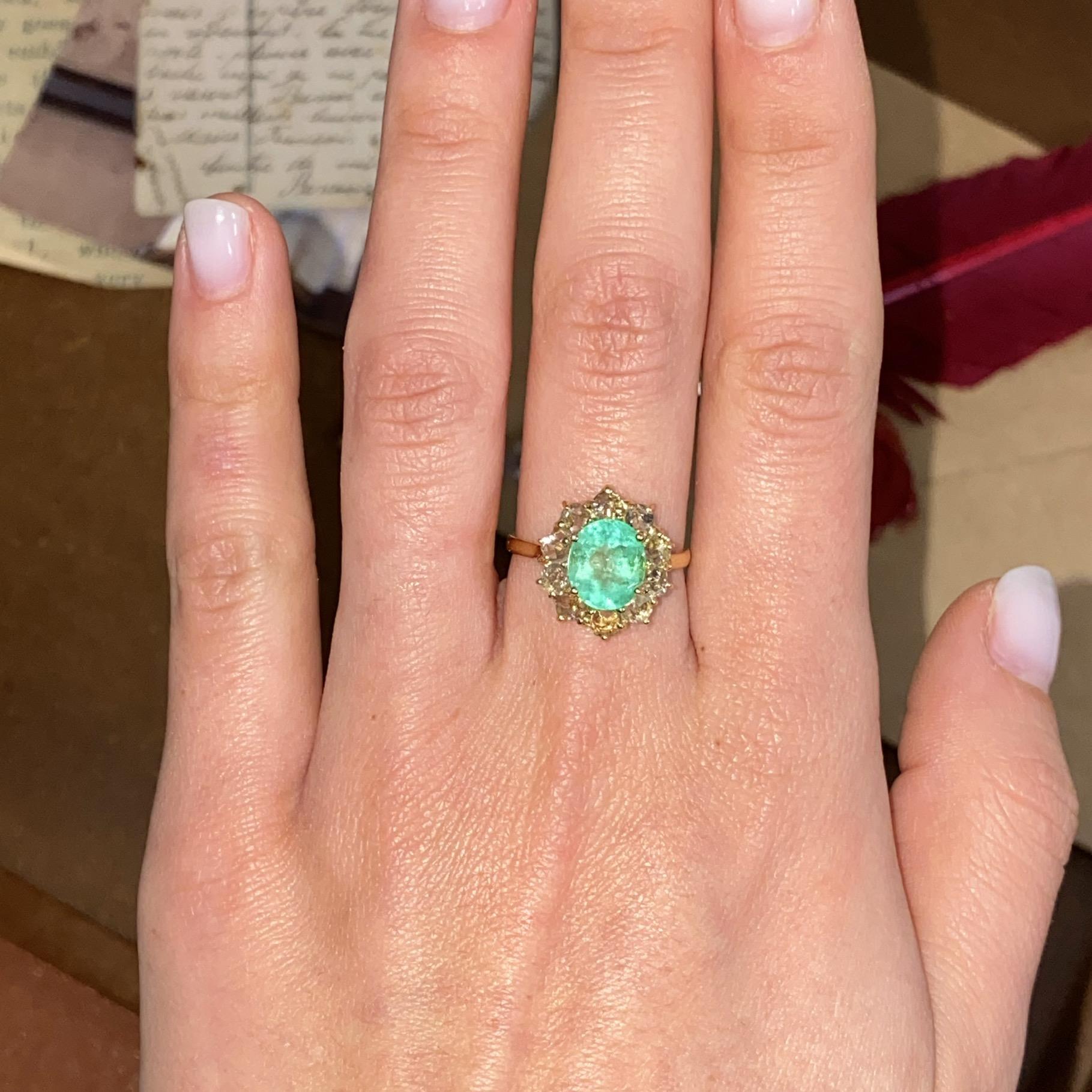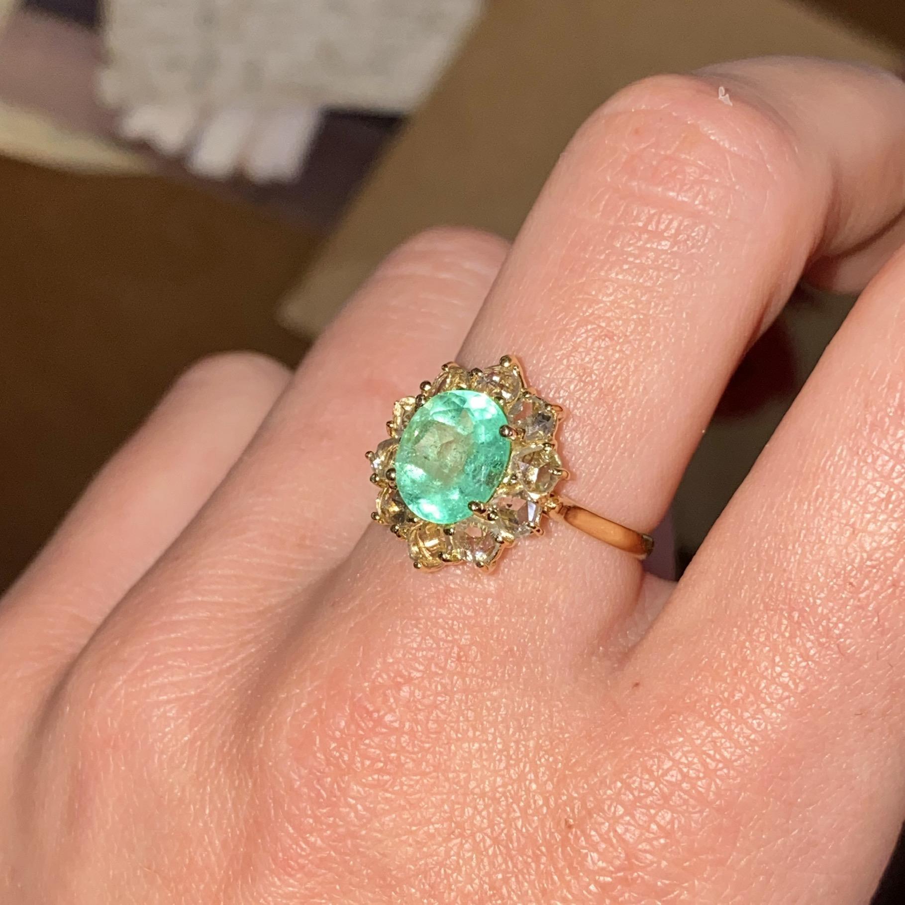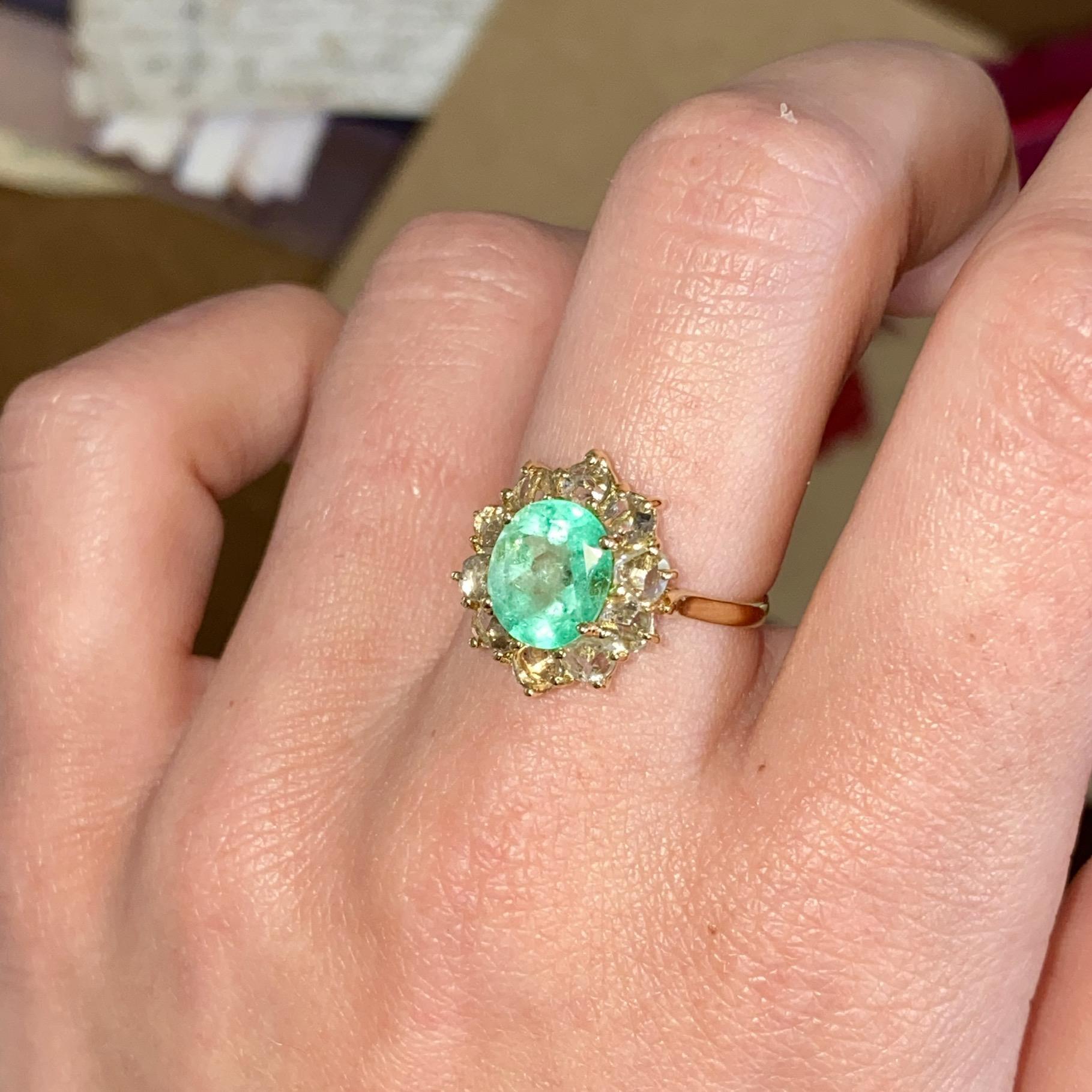 Oro 18kt, rosette di diamanti e smeraldo naturale