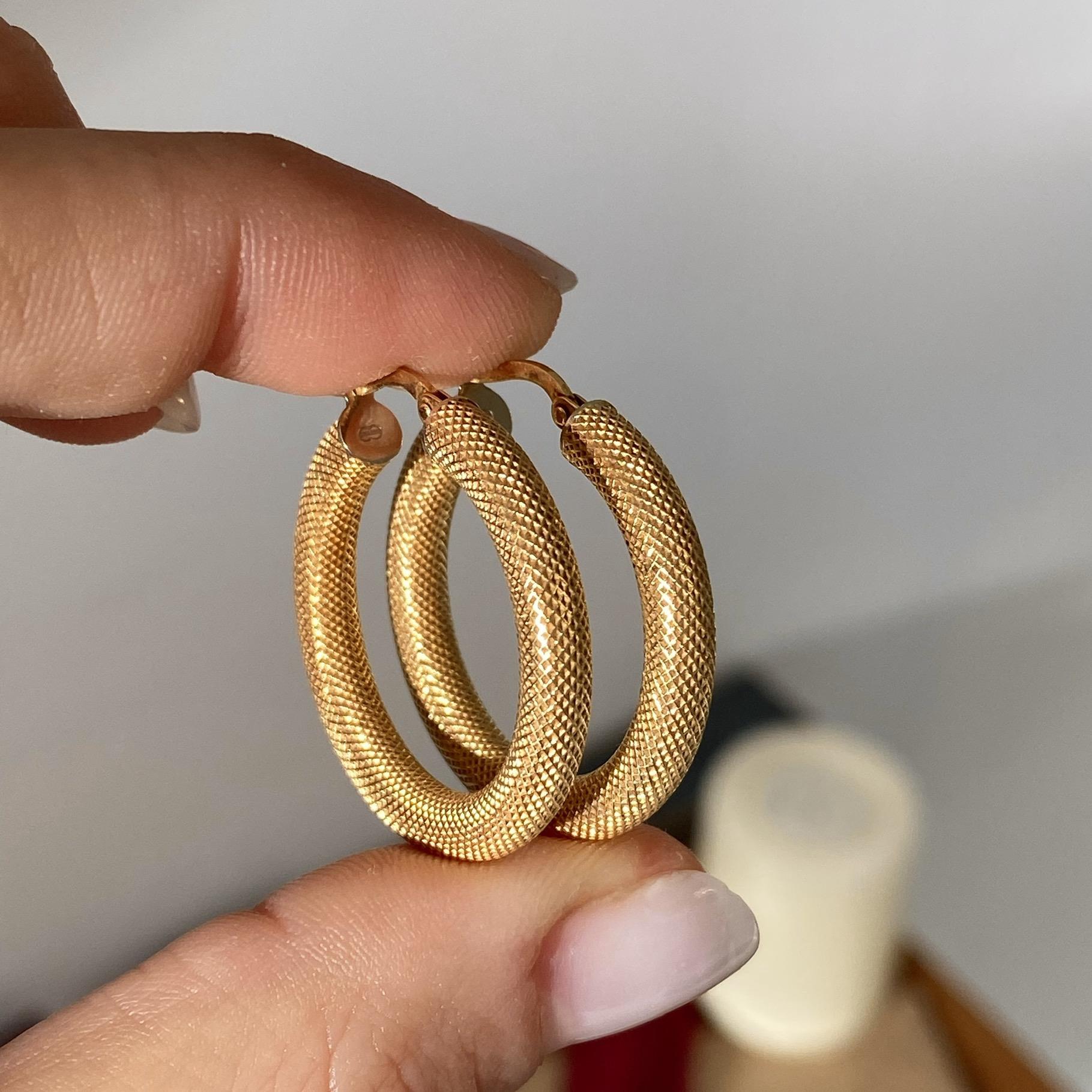 ORECCHINI VINTAGE CERCHIO TUBOLARE RIGATO IN ORO 18KT