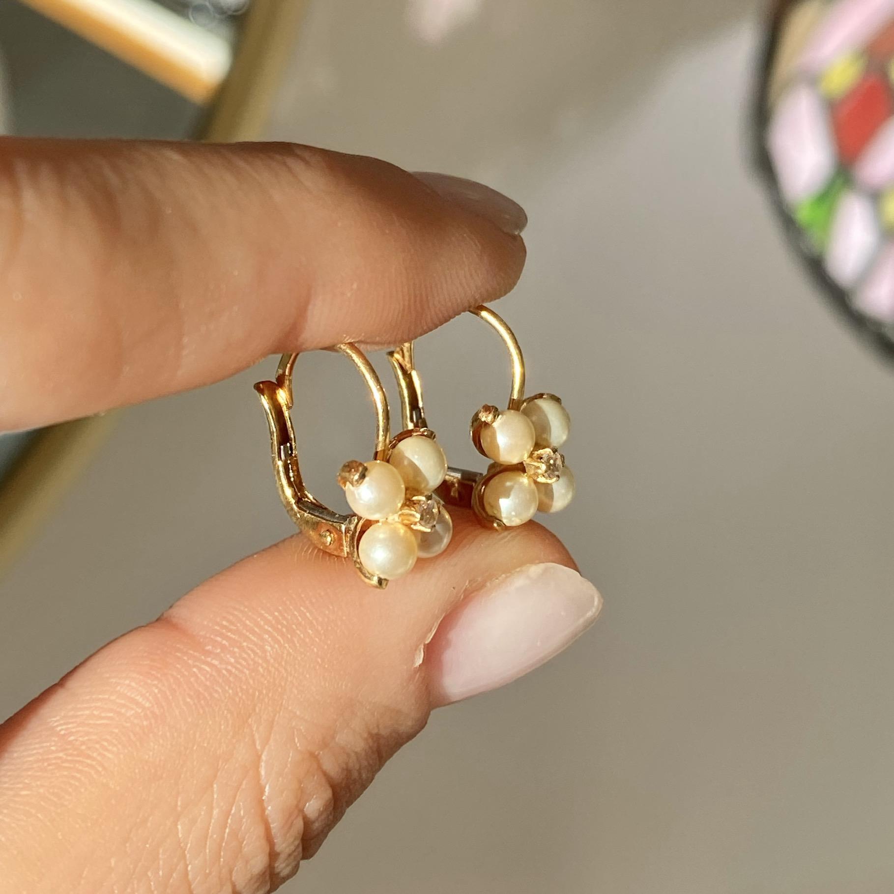 ORECCHINI VINTAGE IN ORO 18KT CON PERLINE E ZIRCONE CENTRALE