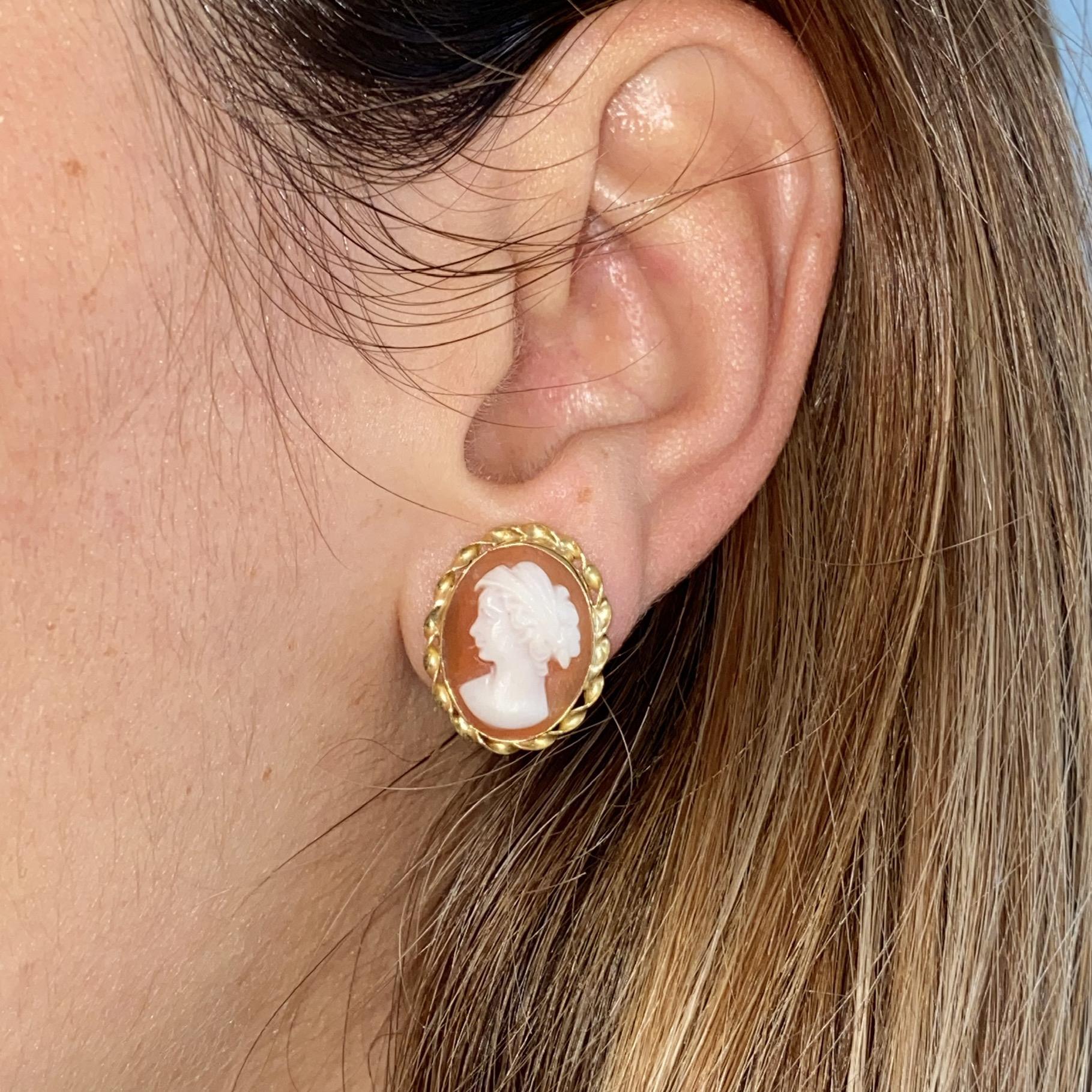 ORECCHINI VINTAGE IN ORO 18KT E CAMMEO