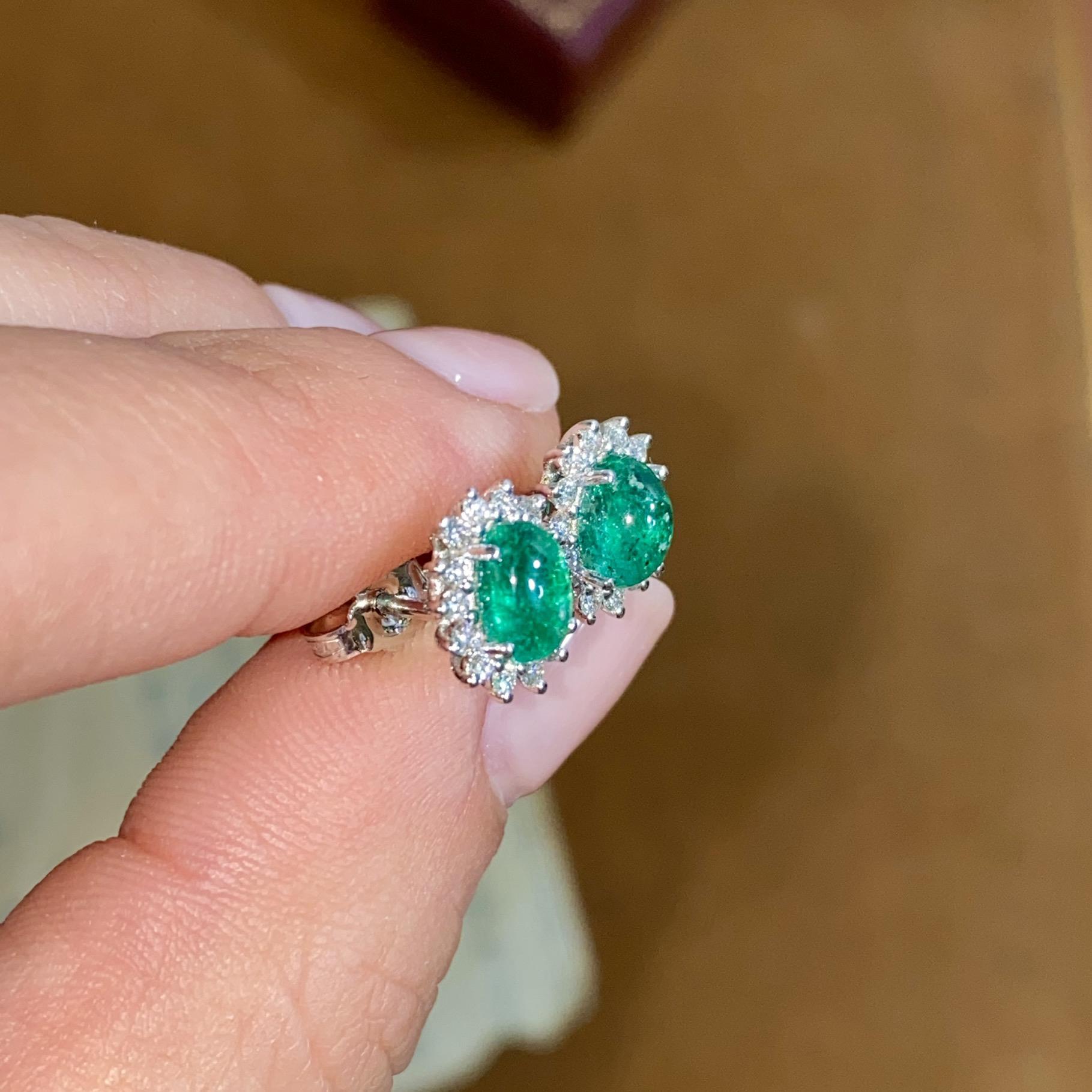 Smeraldi cabochon con inclusioni, caratteristica del tutto naturale e diamanti