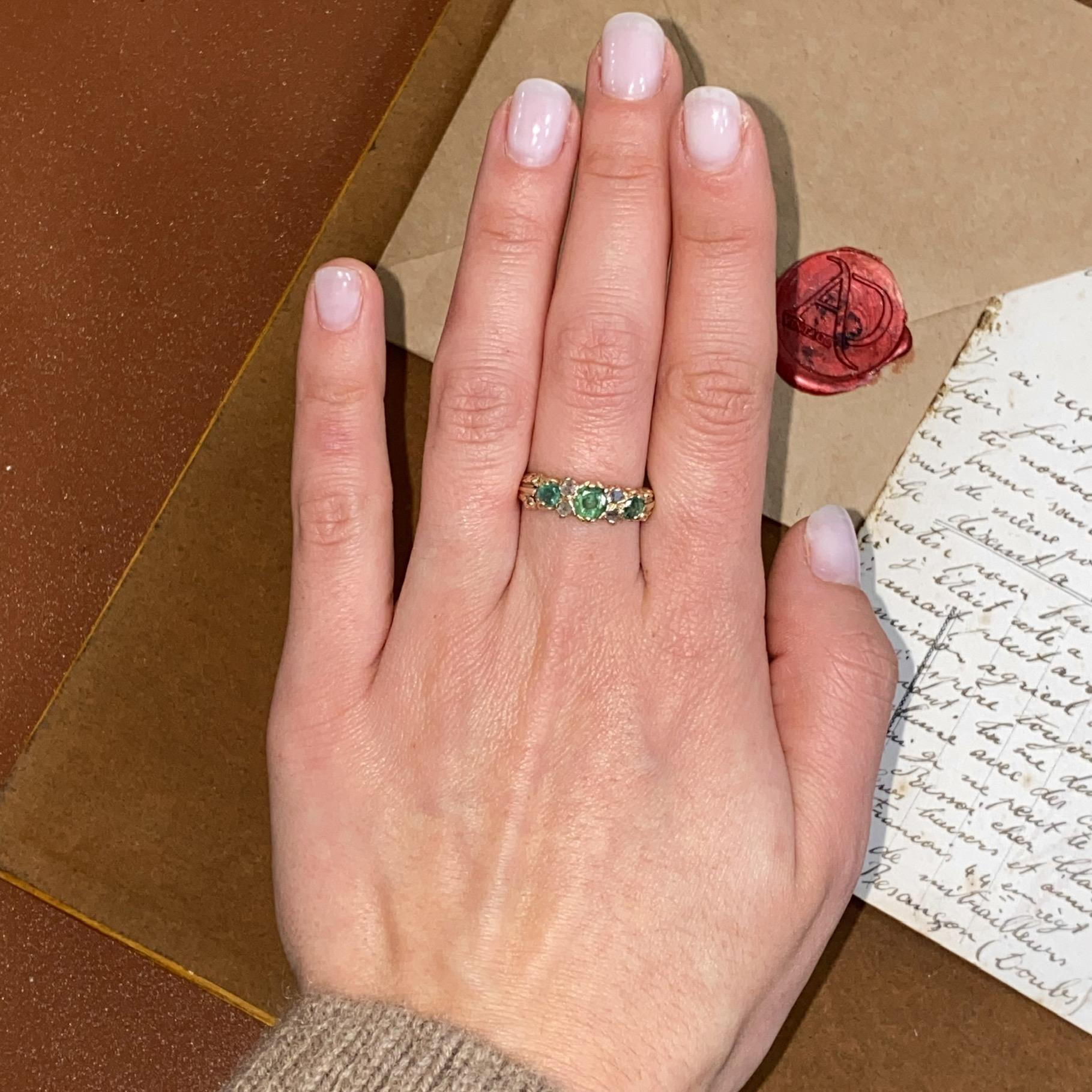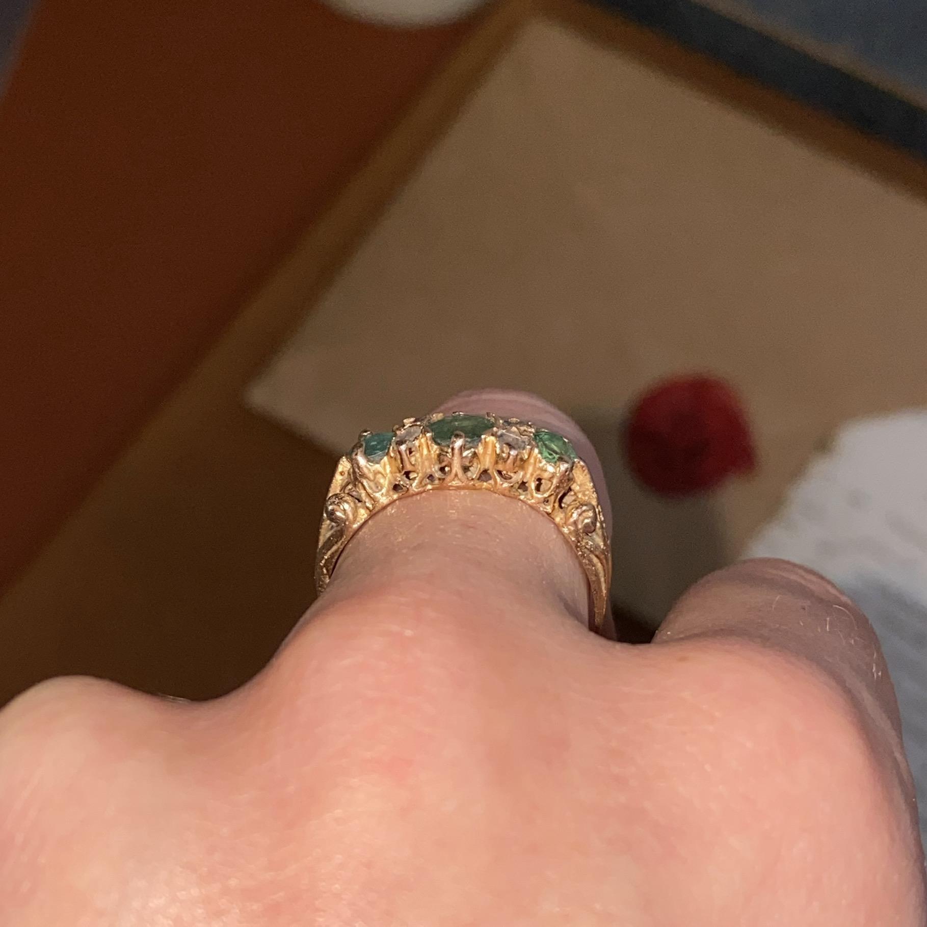 RIVIÈRE ANTICA IN ORO 10KT CON SMERALDI CT 0,80 CA. E DIAMANTI TAGLIO ANTICO C 0,10 CA.