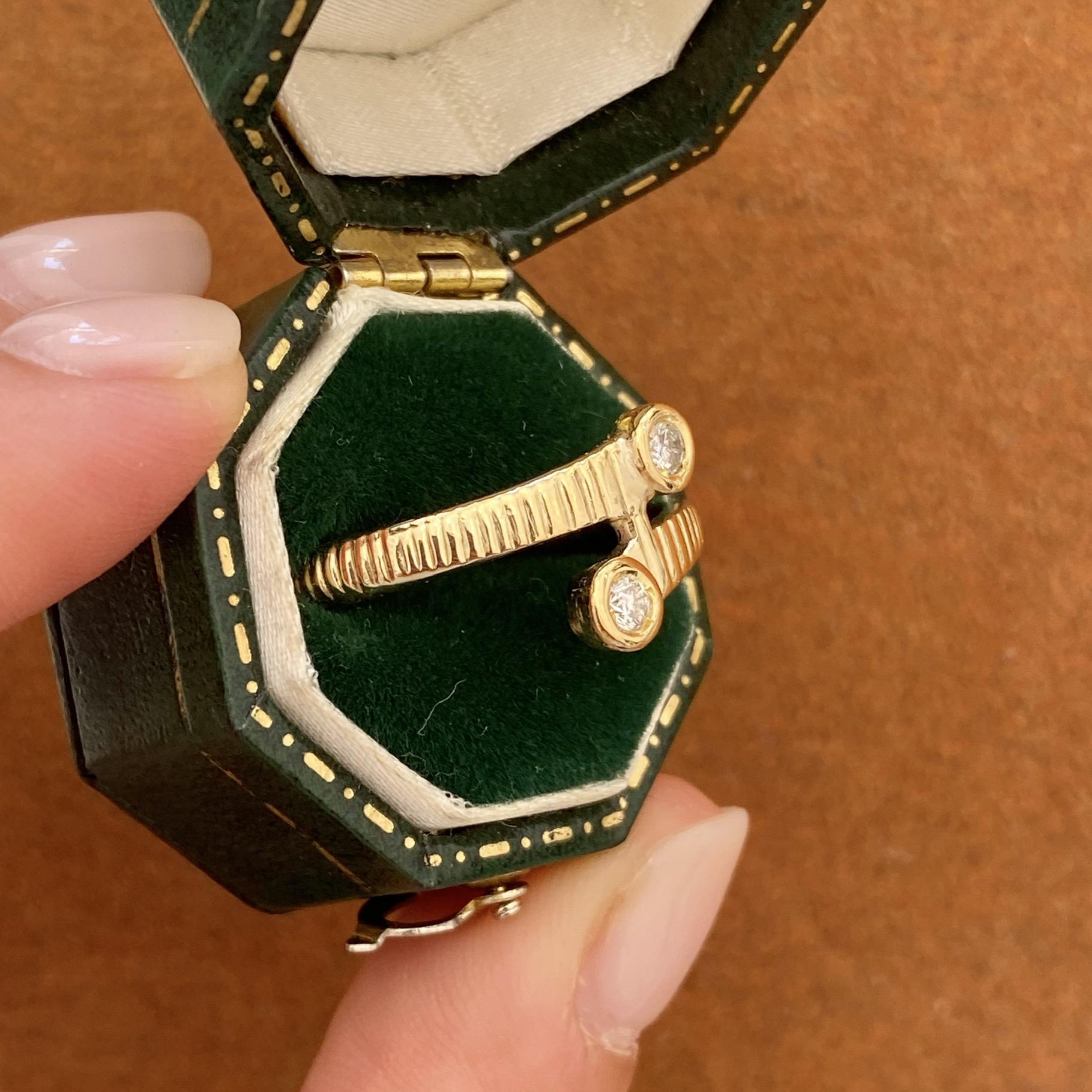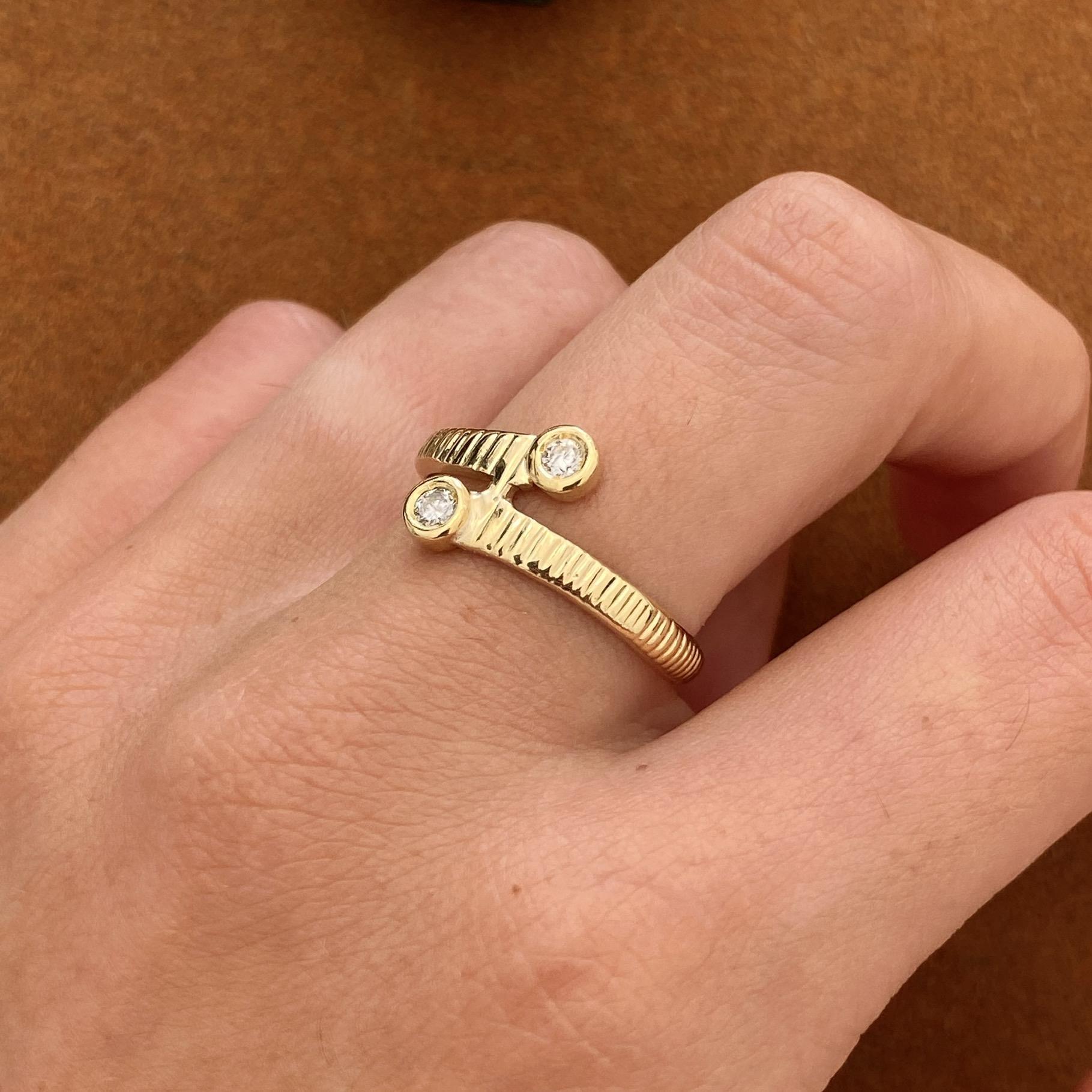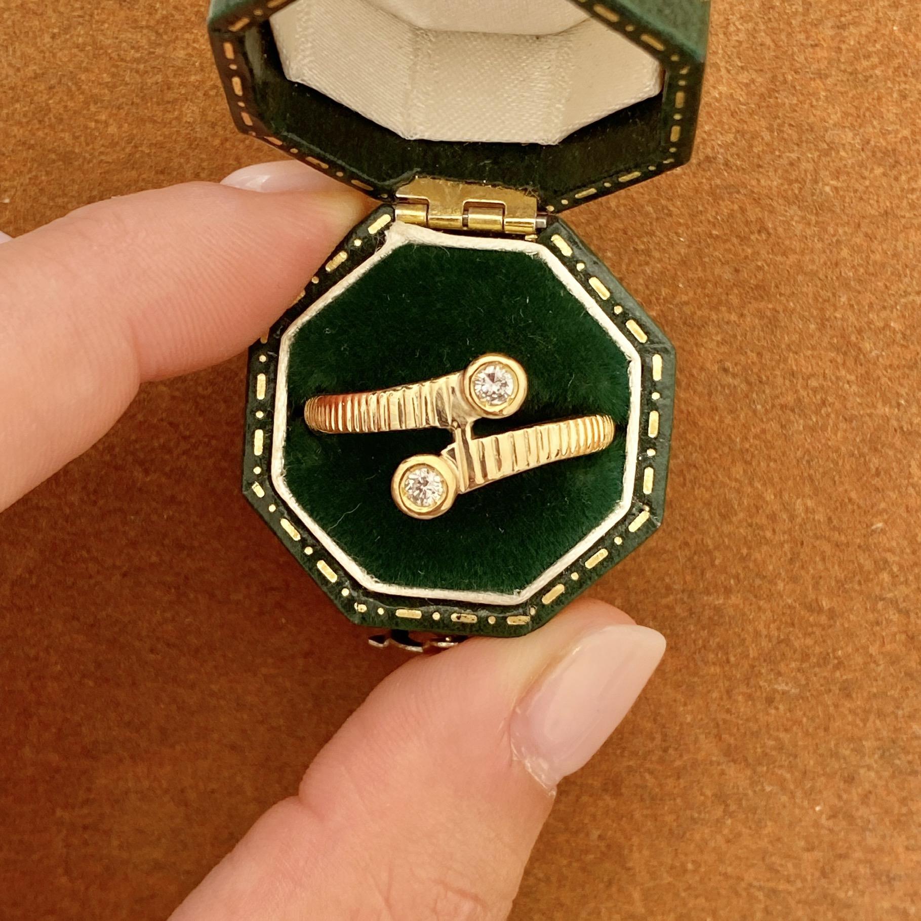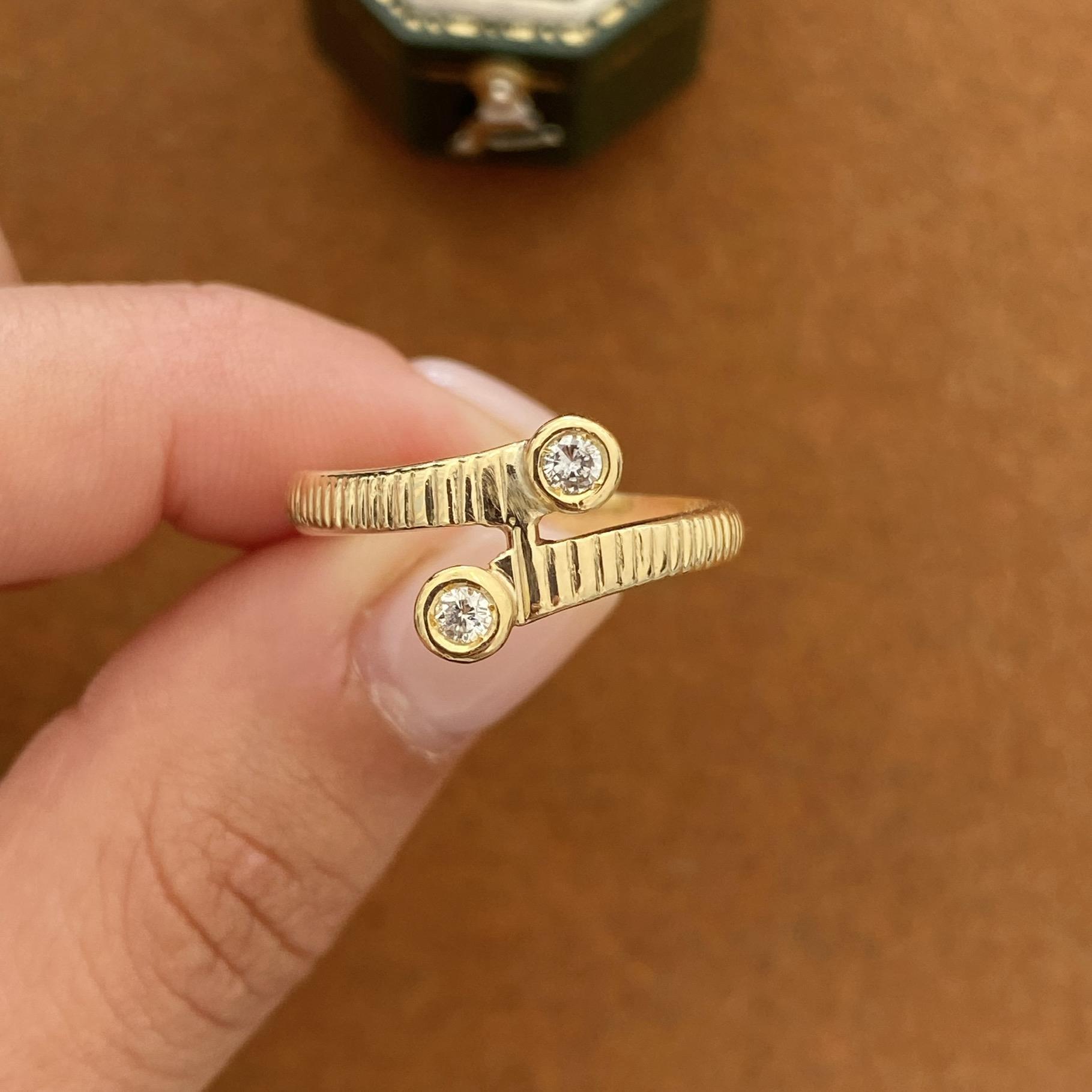 VINTAGE 14KT GOLD BYPASS RING WITH DIAMONDS APPROX 0.10 CT